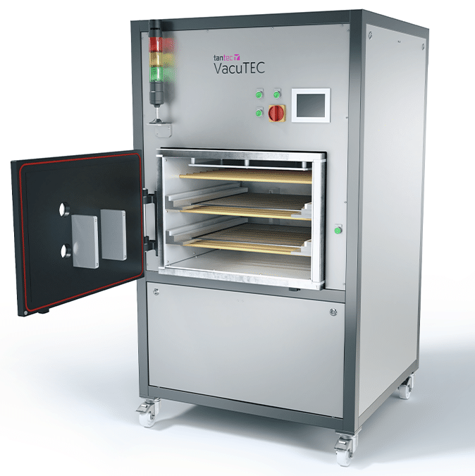 Die Behandlungszyklen sind oft kurz und dauern je nach Material und dessen Zusammensetzung zwischen 5 und 600 Sekunden.Nutzbare Größe für Produkte auf 2Ebenen: 800 x 800 x 200 mm. Das VacuTEC 8080 wird wegen seiner einfachen Bedienung, seiner Zuverlässigkeit in der Produktion und seiner hohen Prozessgeschwindigkeit geschätzt.